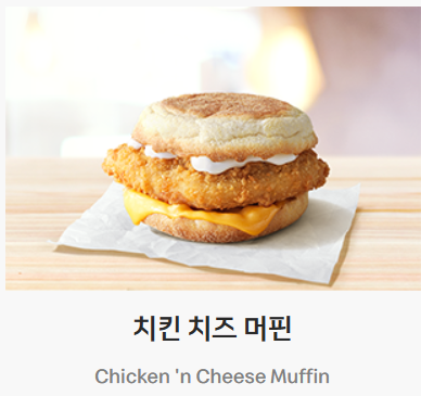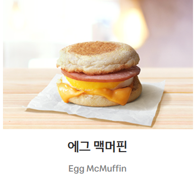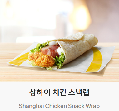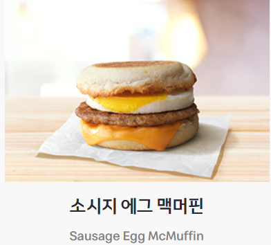 베이컨에그맥머핀 ₩3,400 소시지에그맥머핀 ₩3,700 상하이치킨스낵랩 ₩3,000