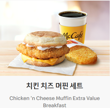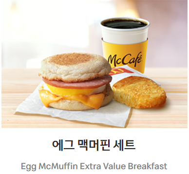 멕모닝 세트는 맥머핀+사이드+음료 구성입니다. 주문시 단선택 후 세트선택 이냐 단품선택이냐 누르면 됩니다.
