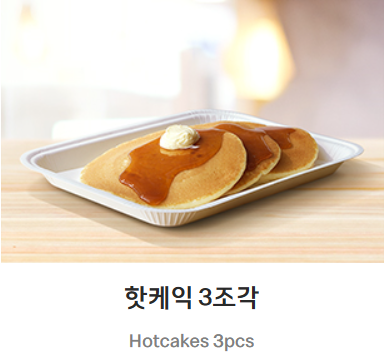 디럭스브렉퍼스트 ₩5,200 핫케익3조각 ₩3,300 핫케익2조각 ₩2,800
