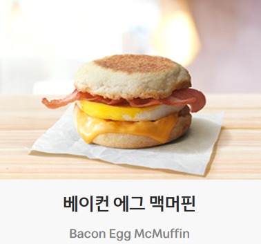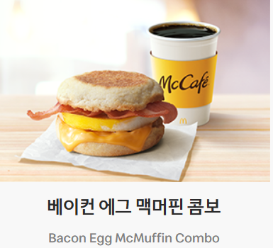 - 베이컨에그맥머핀 콤보 ₩3,900