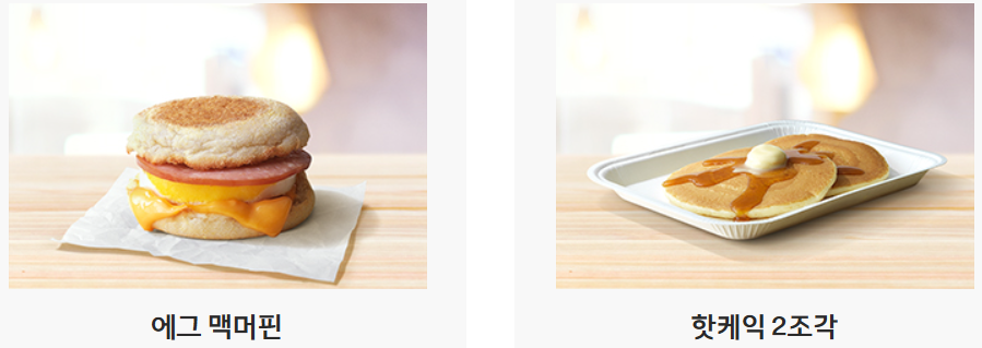 맥모닝 해피밀은 에그맥머핀과 핫케익 두가지로만 구성되어 있어요.