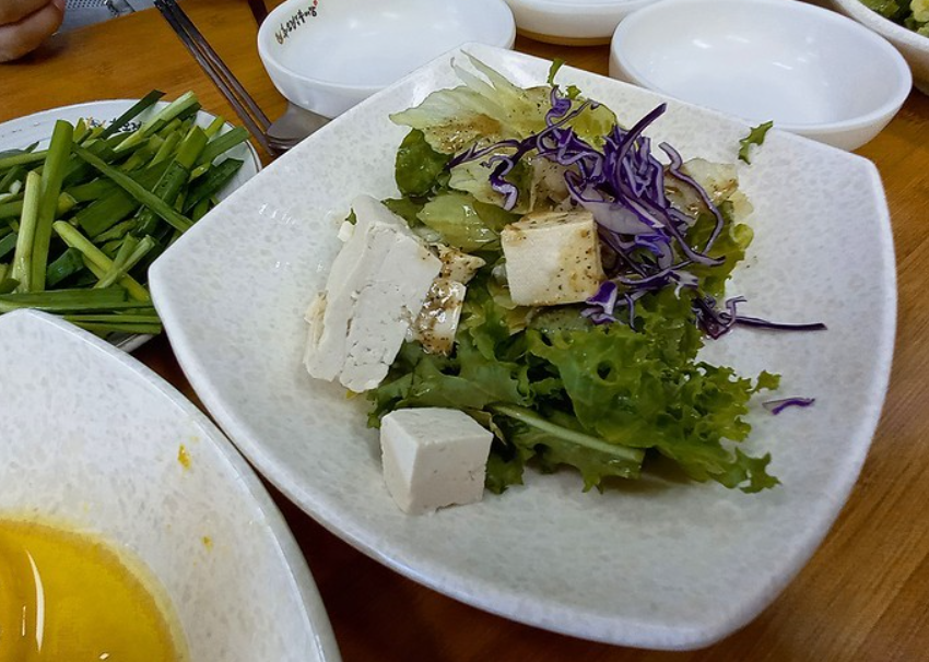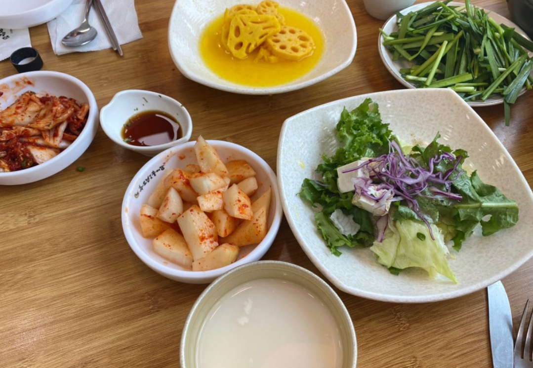반찬으로는 두부샐러드와 유자소스의 연근샐러드가 있는게 특징이며 당연히 김치는 맛있는 배추김치와 무우김치가 있습니다.