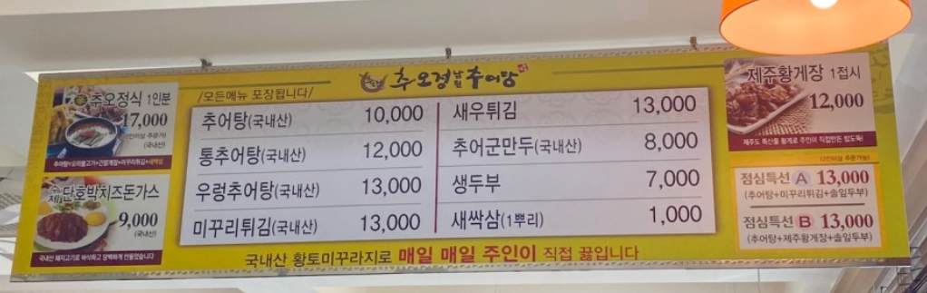 - 대표메뉴 : 추어탕 11,000원 / 추어정식 18,000원