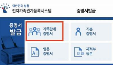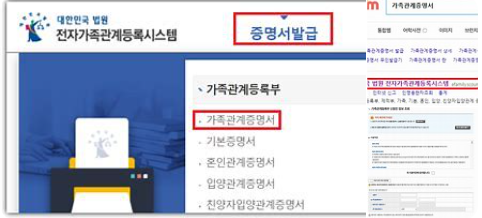 전자가족관계시스템 - 가족관계증명서 발급